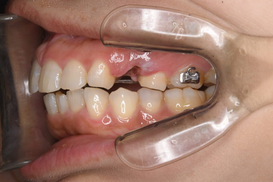 左右とも前から4番目の歯を抜いて、前歯を下げています。