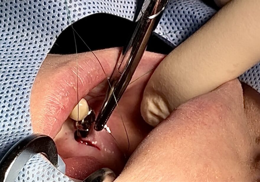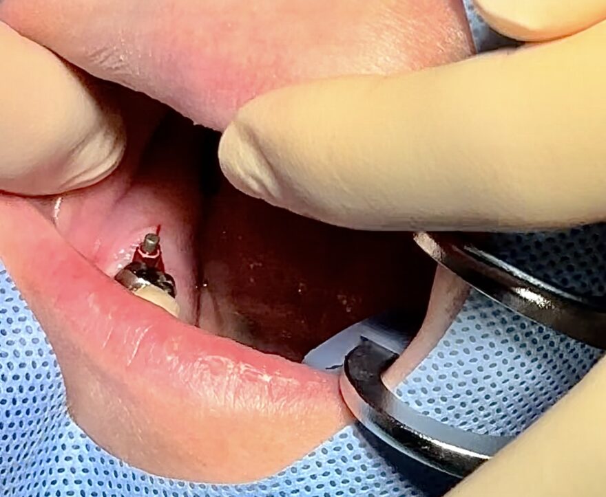すでに抜歯が済んでいる場合は、少しだけ歯茎を切って骨に穴をあけていきます。
