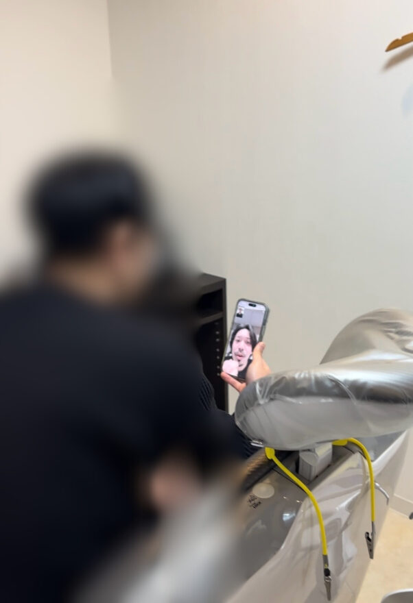 治療前のお口の状態と、仮歯をセットした後の状態は動画で撮影し、技工士の先生と共有しています。