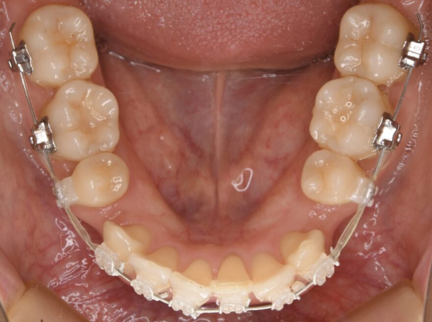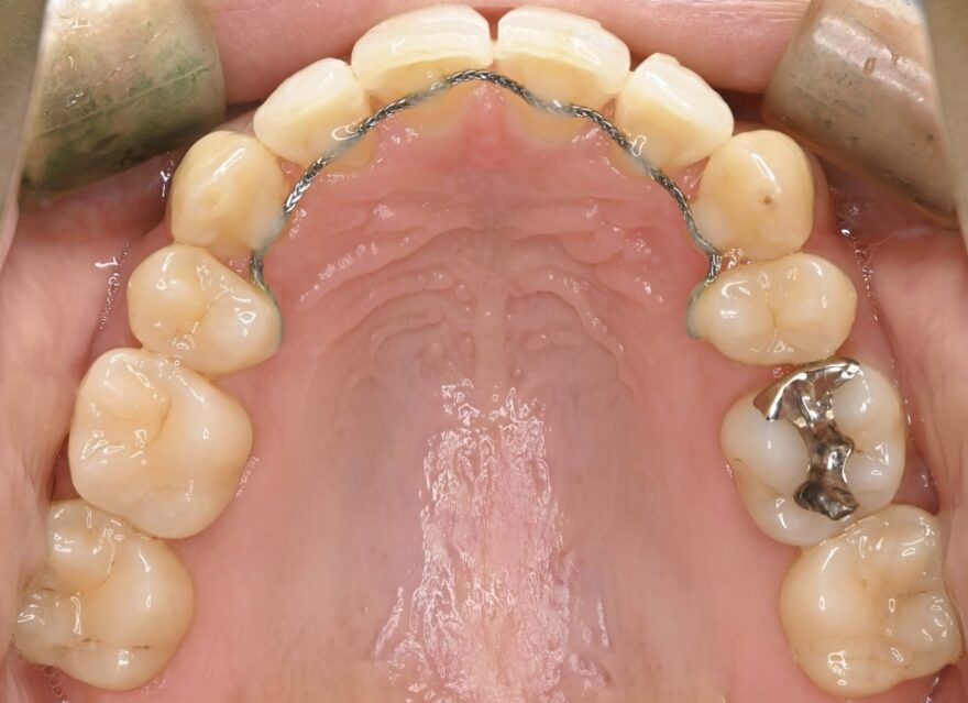 前歯には後戻りを防止するための保定装置が装着されています。