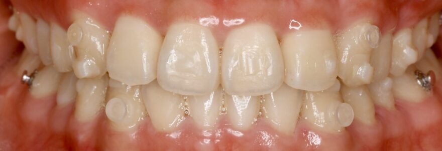 などといったマウスピース単体では苦手とされる、歯の3次元的な移動が可能となります。