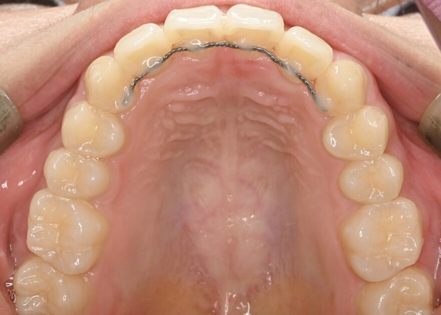 下顎の前歯にもワイヤーによる保定装置を装着しています。