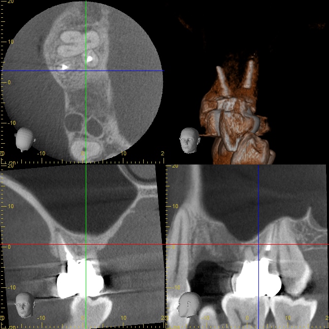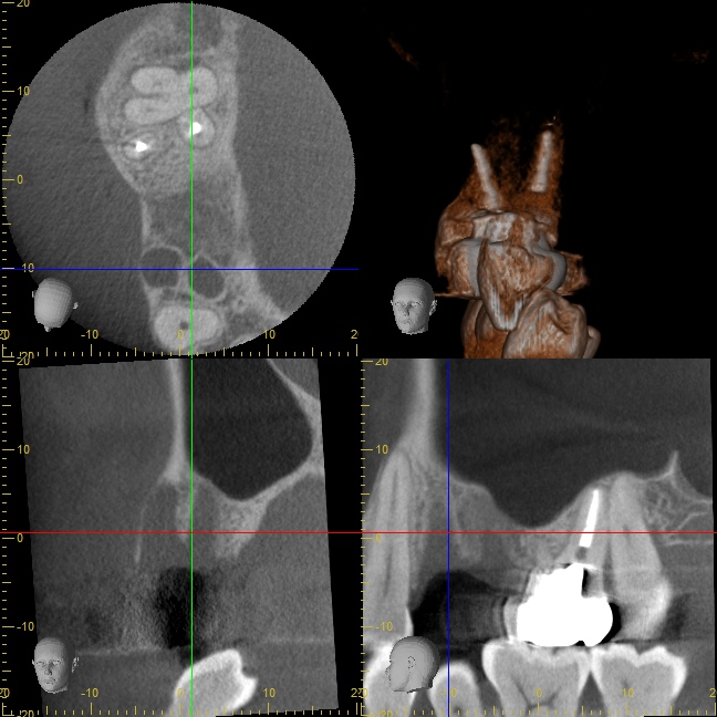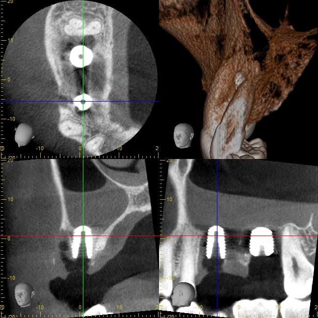 インプラント先端が少しだけ上顎洞(副鼻腔)に突き出てるように見えますが、問題はありません。