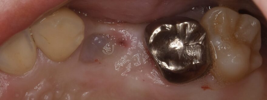 残せない歯を他院さんで抜いたばかりのため、骨がとても少ない状態です。