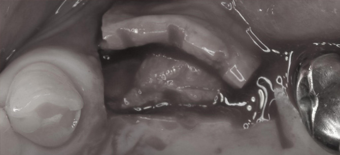 非常に骨量が少なく、副鼻腔(上顎洞)までの距離は1ミリもありませんでした。