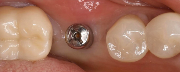 最後に、アクセスホール(インプラント本体と上部構造を固定するスクリューを締めるための穴)を樹脂で埋めて、治療終了となります。