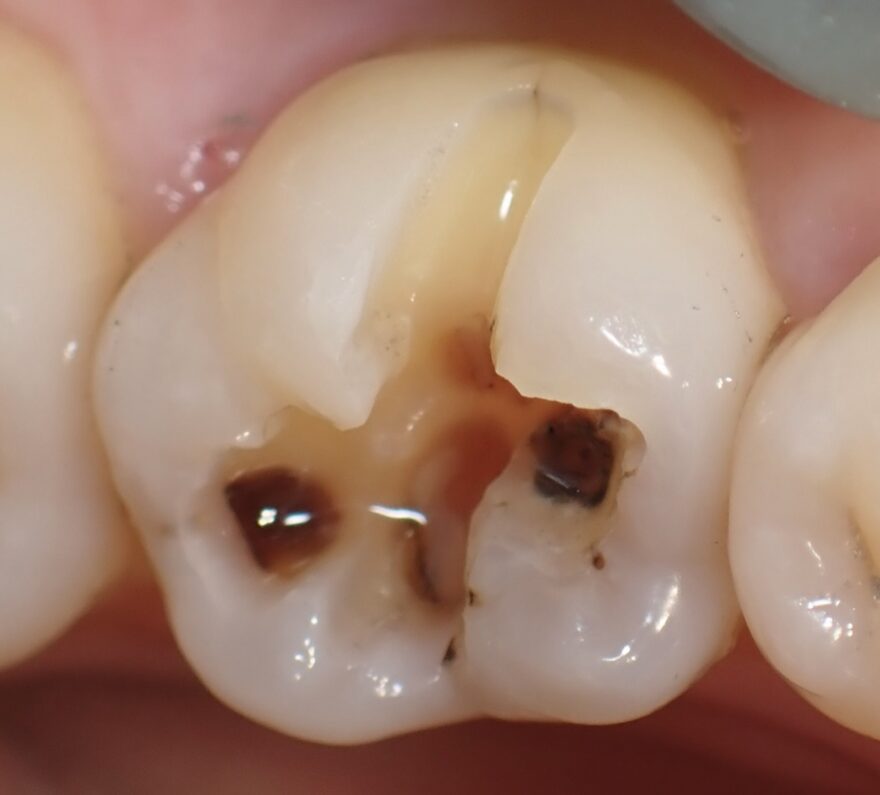 硬い銀歯による歪んだ力のせいで、歯が完全に割れてしまうことがあります。