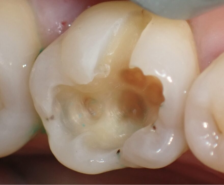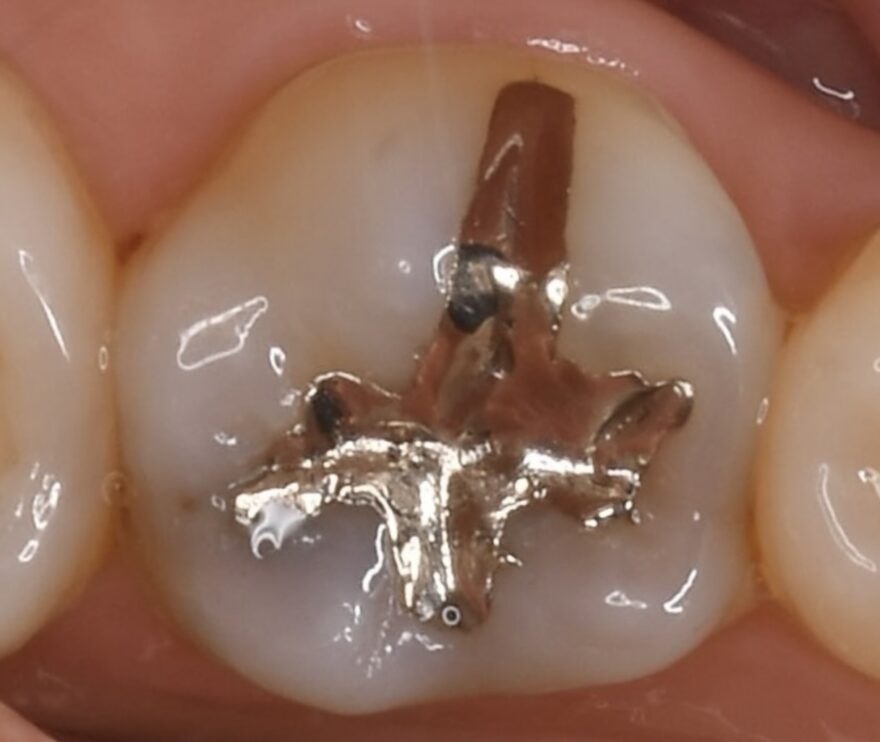 保険適応のレジン充填(光硬化型のプラスチック)を詰めても、強度に劣るため、咬合力に耐えれず、染みてしまい、しっかり噛むことができません。