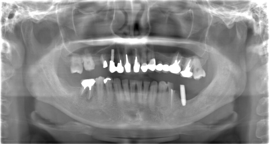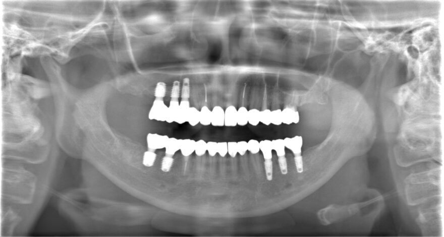 7本のインプラント治療と18本のセラミック治療で、顎関節とのバランスまで考慮した機能的な噛み合わせを再建しました。