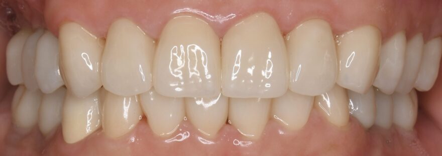 矯正治療で全体的な噛み合わせを整えた上で、もともと欠損している前歯にはインプラントを埋め込みました。