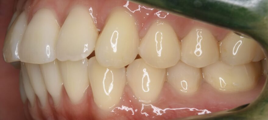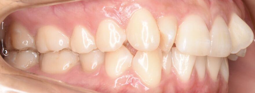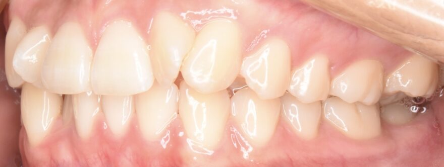 側方から見ると、前歯が90度以上回転していることがわかります。