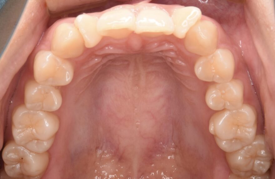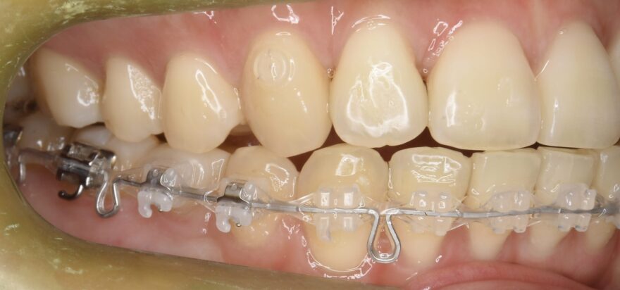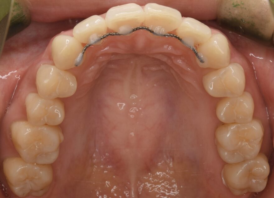 上顎の前歯にはワイヤーによる保定装置を装着しました。