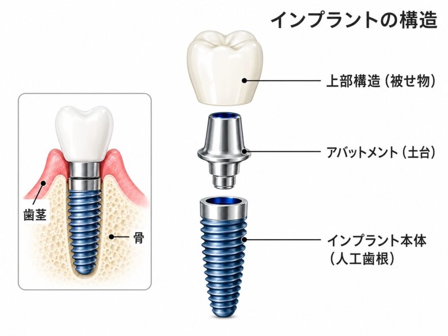 インプラントは3つのパーツで構成されています。