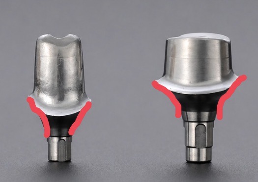 一方で、歯茎の形や角度にぴったり合わせる自由度は、カスタムアバットメントに劣ります。